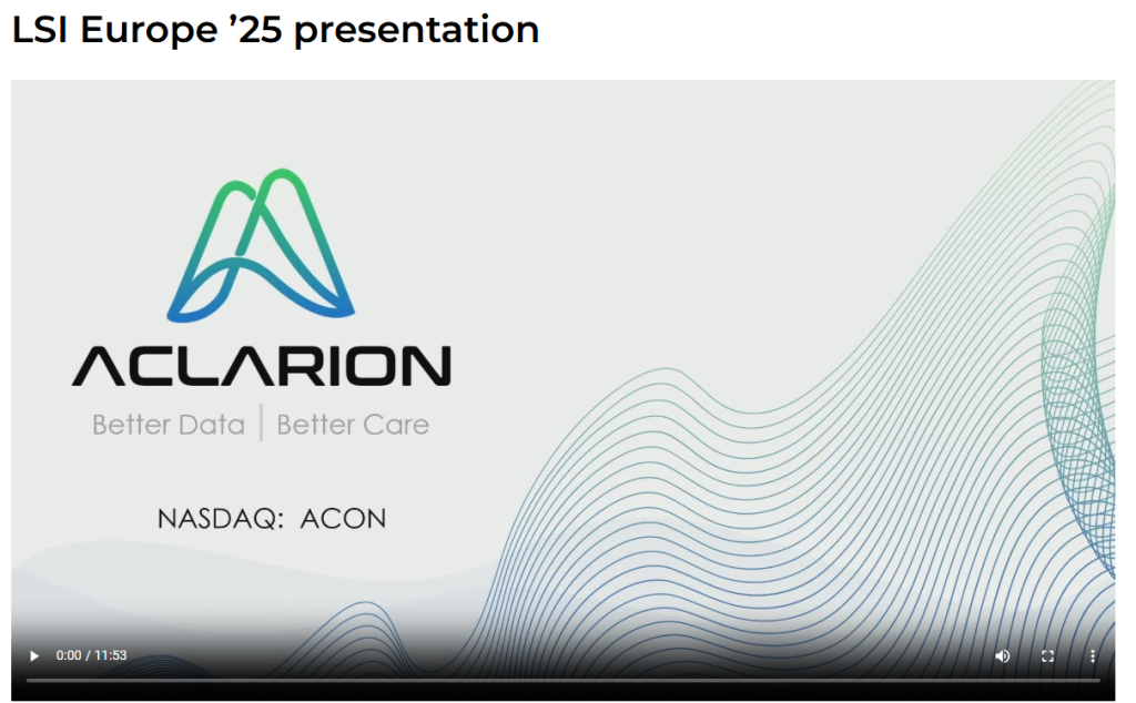 BROOMFIELD, Colo., October 1, 2025 – PRISM MediaWire (Press Release Service – Press Release Distribution) – Aclarion, Inc., (“Aclarion” or the “Company”) (Nasdaq: ACON, ACONW), a healthcare technology company that is leveraging biomarkers and proprietary augmented intelligence (AI) algorithms to help physicians identify the location of chronic low back pain, today announced its recent presentation at LSI Europe ’25 which is now available to investors and stakeholders.