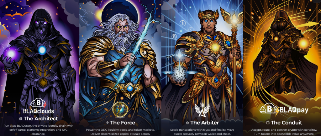 - BLAQclouds (Identity & Governance): Core identity, compliance, and permission architecture that governs participant access and system integrity.